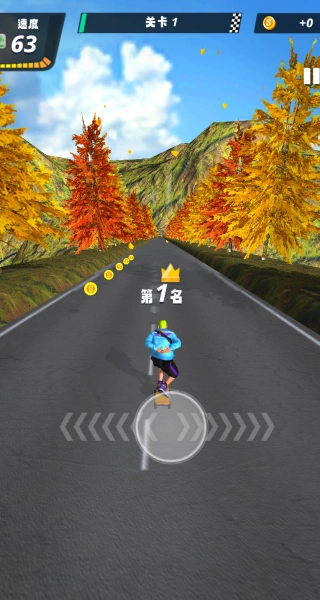 2、利用虚拟摇杆灵活控制角色方向,在滑行途中精准收集沿途金币,为提升排名解锁奖励积累资源。