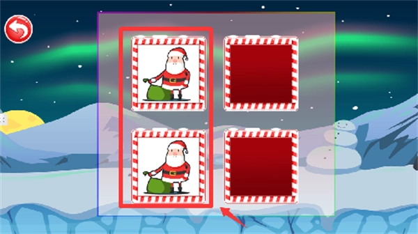 2. 玩家要在圣诞老人的工作间内,借助翻看卡片的形式,从大量礼物图案里找出所有成对的物品,以此完成核对任务。