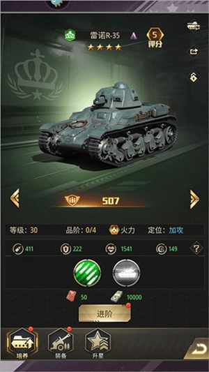 另外,配件共有4个部位,虽然各部位的改造价格相同,但它们的作用存在较为明显的差异。建议优先改造武器,因为武器能提升坦克的百分比攻击力,这一效果十分实用。对于需要在前排承受伤害的重型坦克而言,装甲的改造优先级也很高,剩下的两个配件则可以适当降低优先级,影响不大。