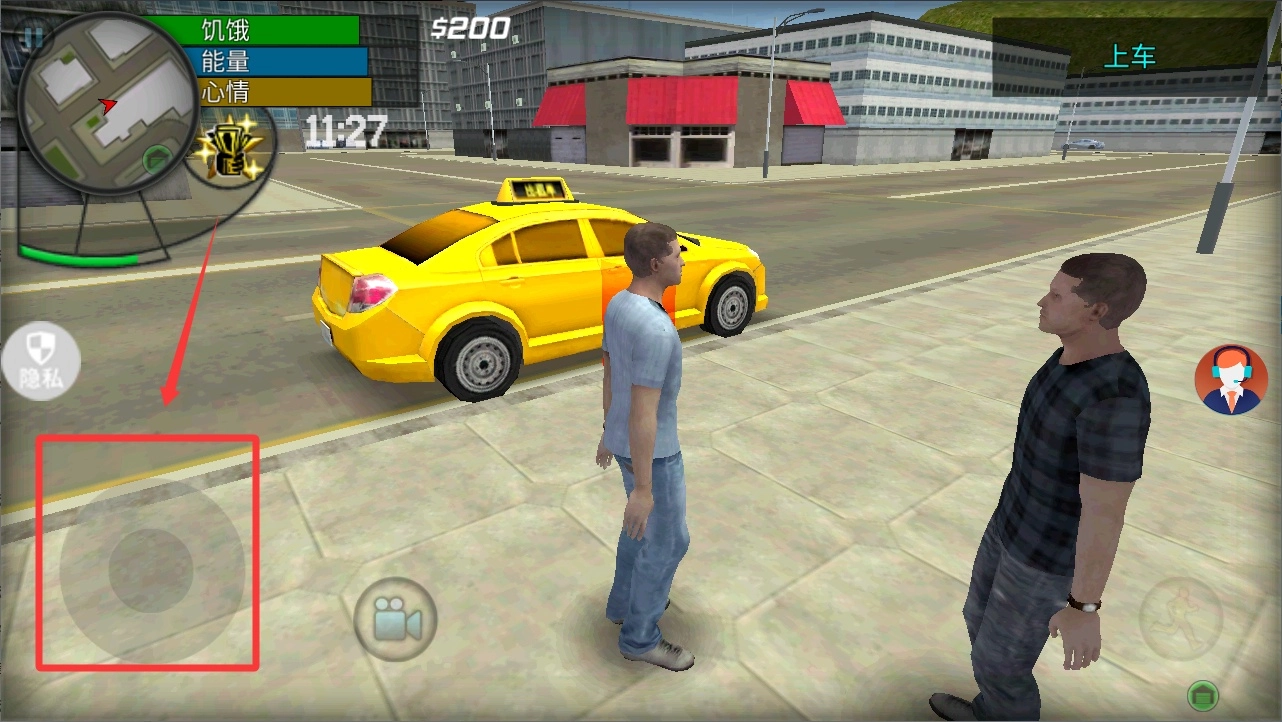 通过操控左侧的虚拟摇杆来控制角色移动,使其逐步靠近目标车辆,同时要注意保持合适的距离,以此来触发交互判定的范围。