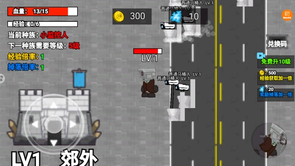 3、玩家通过虚拟摇杆控制马桶人移动,利用掩体进行掩护,并点击按键使用主副武器射击。基础操作直观,易于上手。