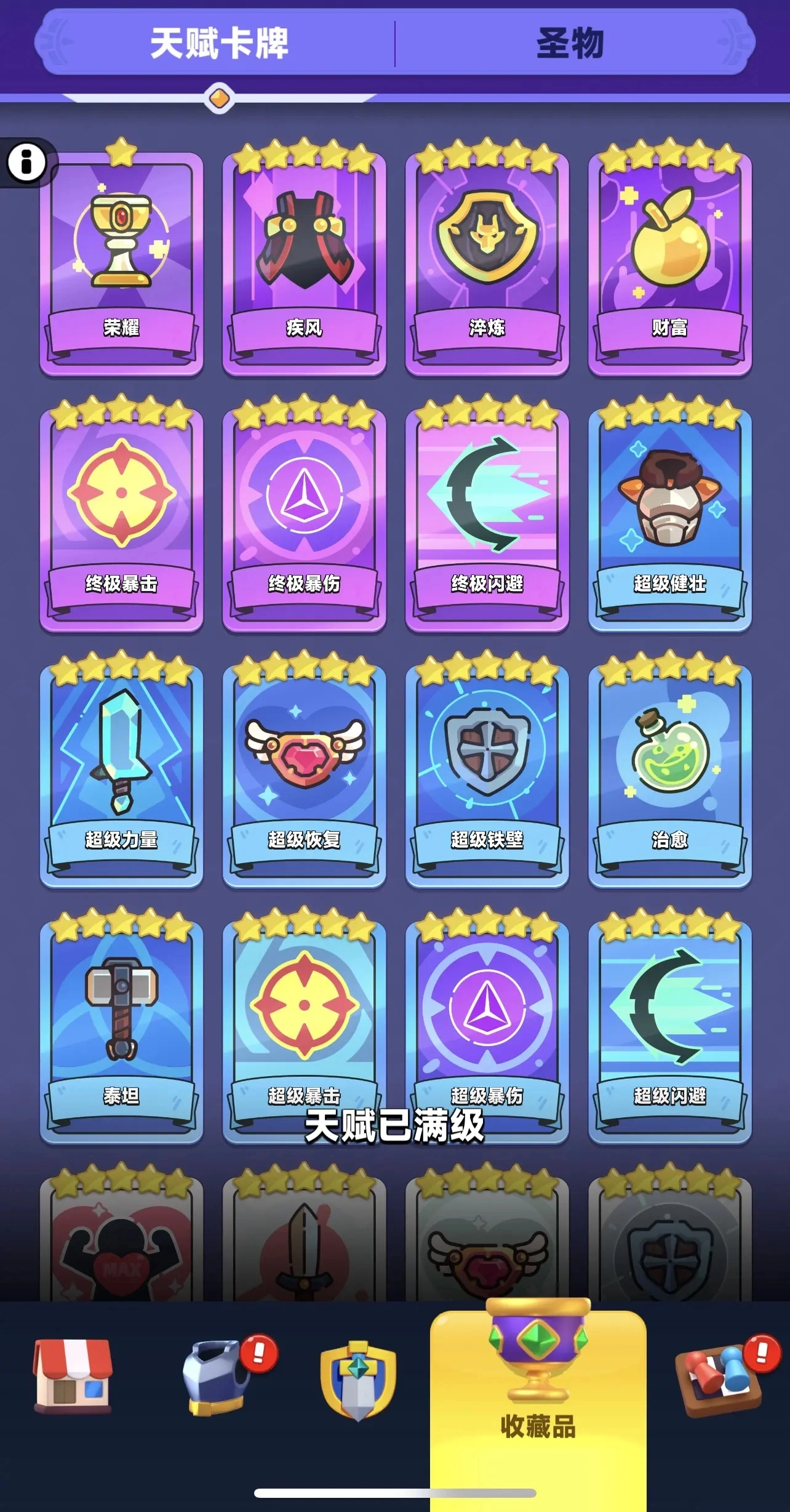 12、天赋卡牌这块没什么特别要讲的,除开荣耀卡牌之外,其他类型的卡牌最高等级都是五星。换个说法就是,大家早晚都能达到毕业状态。