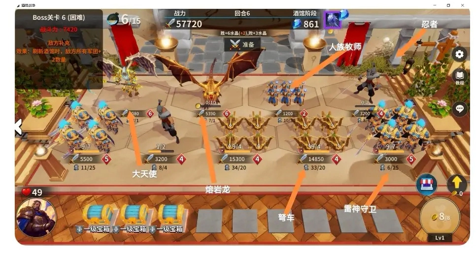(1)完成熔岩龙任务,或入场人族牧师(放在熔岩龙右边)触发联合军团效果增加数量。