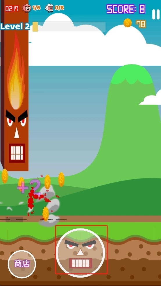 角色动态鲜活:柱子哥移动时的摇晃、跳跃时的弧度都充满喜感,碰撞障碍时的夸张反应搭配趣味音效,让角色形象更生动,增加代入感。