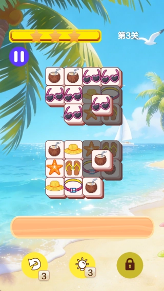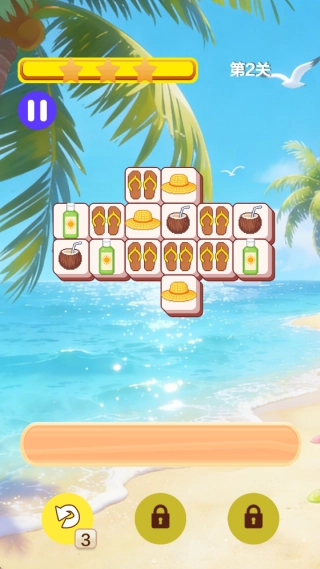 2、通关第一关后解锁更多消除内容,逐步适应提升的难度,通过指尖精准点击实现多层消除,积累分数。
