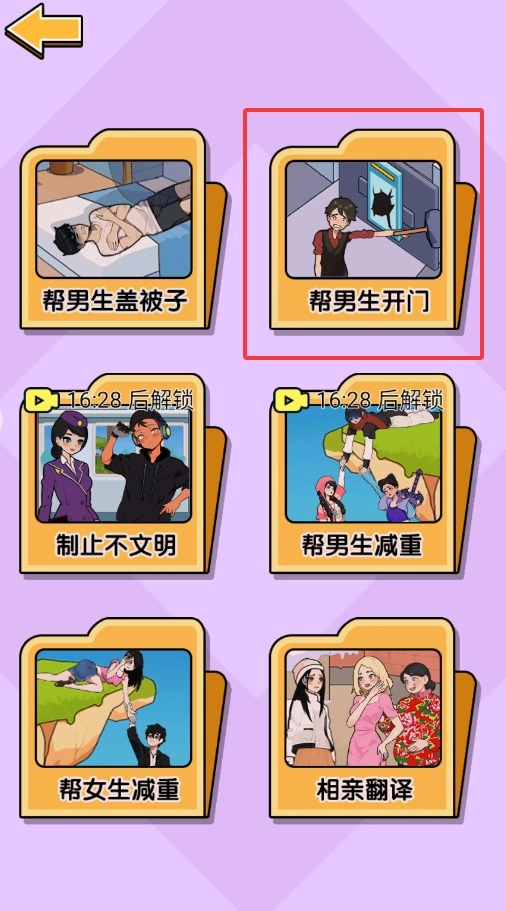 核心玩法是辅助主角打开门,通过把场景里的箱子、钥匙等物品拖拽到恰当位置即可完成关卡。