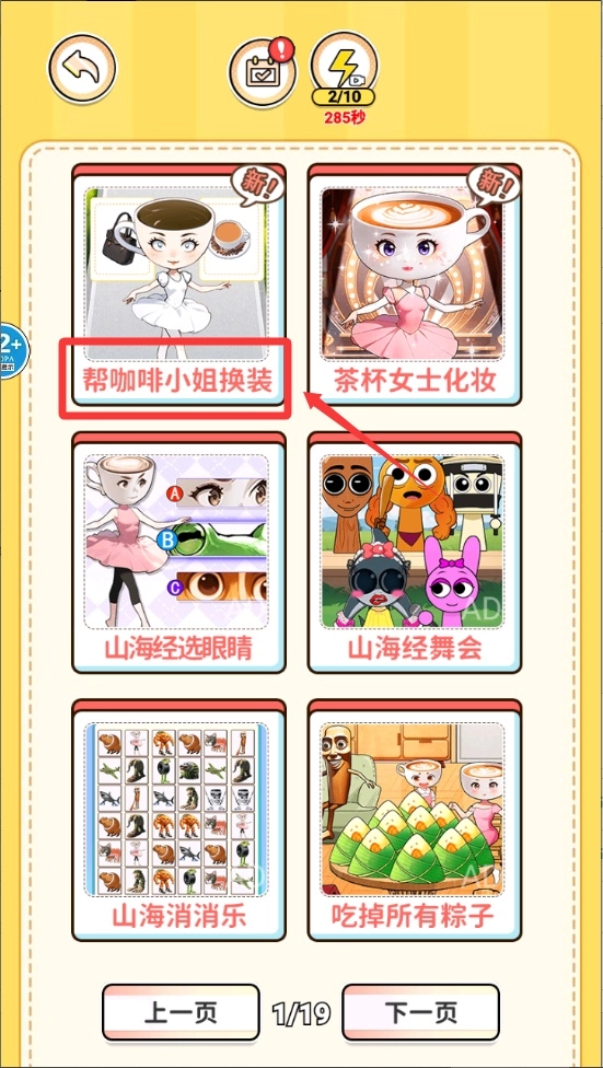 进入“咖啡小姐”互动界面后,可从左侧衣柜里挑选心仪的服饰,借助拖拽操作来为小姐姐打造各式各样风格的造型。