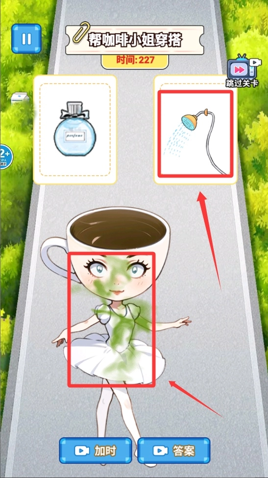 当小姐姐的衣服沾上污渍时,只需快速点击右侧工具栏里的花洒图标,接着滑动手指,就能帮她把衣服清洗干净,还能获得满意度加分。