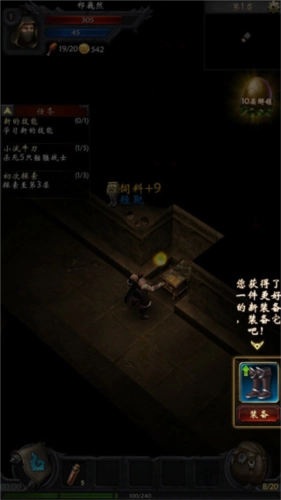 当然探险不可能只有杀怪,在我们前进时,会遇到各种箱子和金币,金币只要走上去就可以获得,宝箱需要用武器打开才能获得里面的东西,宝箱中有很大几率开出装备,在前期除了击杀类层的boss会掉落装备外,只能开宝箱获得,当然大多宝箱都是有怪物看守的,获得的装备若是比身上的好,就会在右下角提示我们,点击装备上就可以了。
