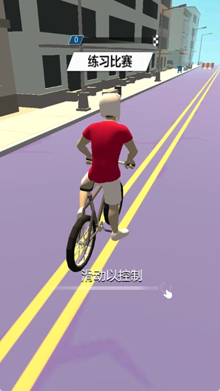 进入游戏后选择练习模式,留意屏幕上的滑动操控提示,先熟悉一下操作方式,为接下来在道路上骑行躲避障碍物做好准备。