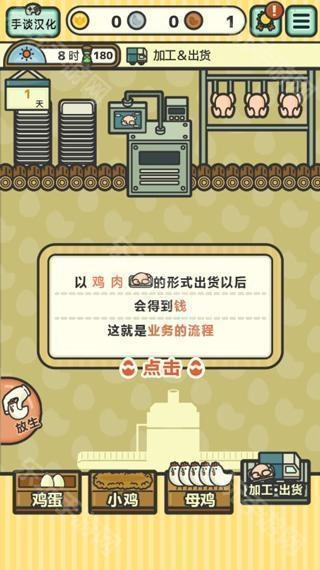 2.白天为生产时段,时长三分钟。在此期间,玩家可点击加速机器运行,以此提升小鸡的生长与售卖效率,从而获取更多收益。