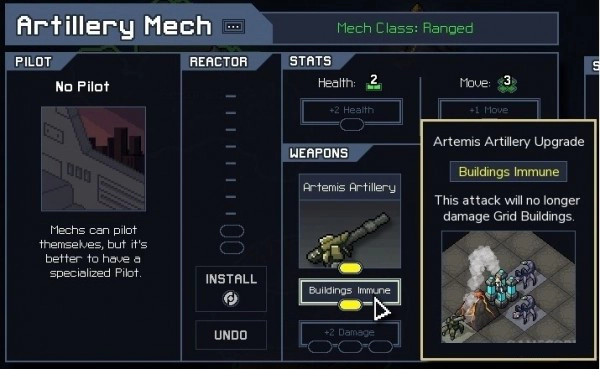 忠告之二:进行炮兵机甲( Artillery Mech)升级,抵消其对建筑的伤害