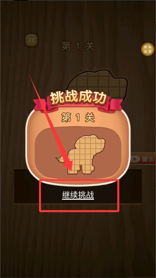 成功拼好拼图后,界面会弹出通关动画,轻点右下角的继续按钮就能进入新关卡。