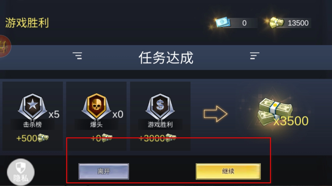 当任务成功完成后,游戏会呈现胜利界面,这时你既可以选择退出以结束当前游戏,也能够点击继续来开启新的战斗挑战。