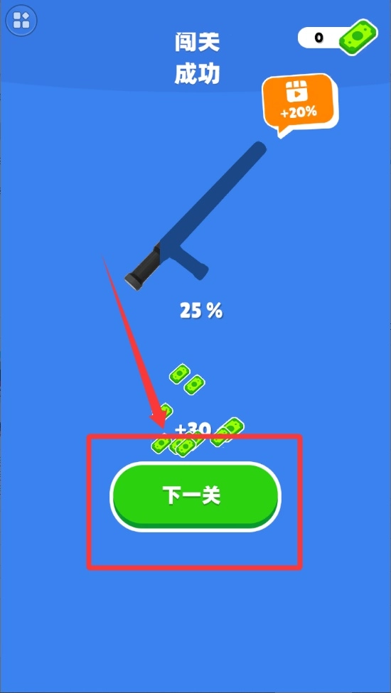 成功击败所有敌人后,界面上会出现闪烁的“下一关”按钮,点击该按钮就能进入难度更高的挑战关卡,而且每一关的敌人在数量和类型上都会有所不同。