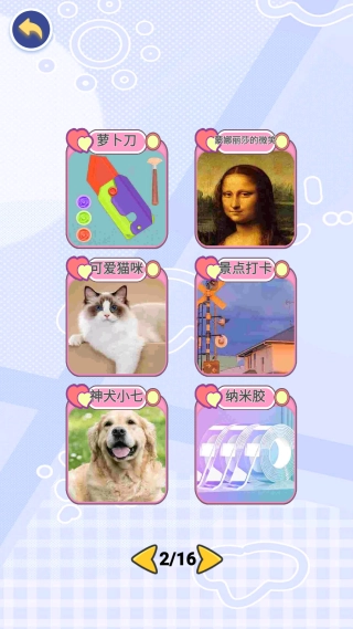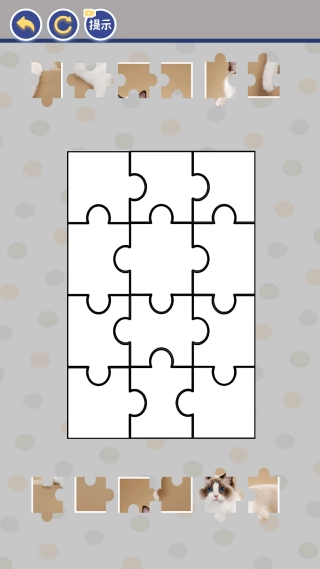 就像图里展示的那样,当你点击“可爱猫咪”这个选项后,就会进入到拼图挑战的环节,快来完成这个拼图挑战,把可爱猫咪的图案复原吧!