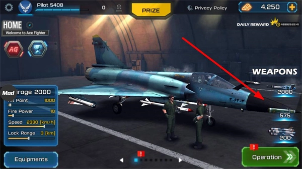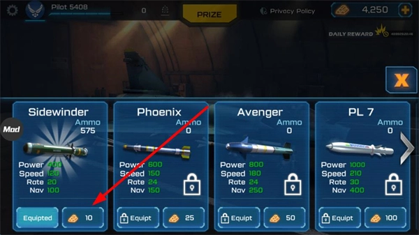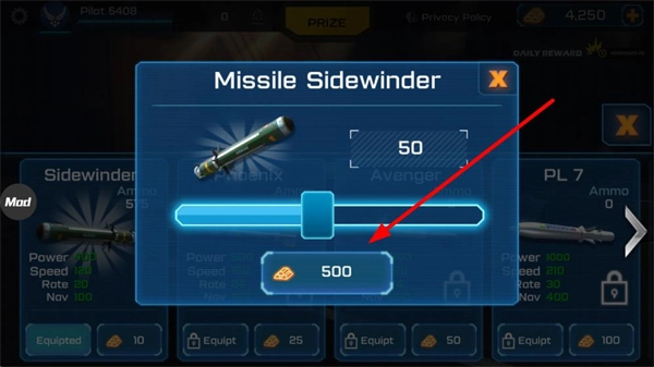 点击下方的购买按钮,就能完成导弹购买,增强战机的空战能力。