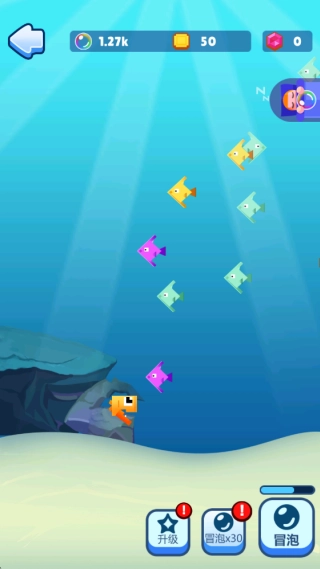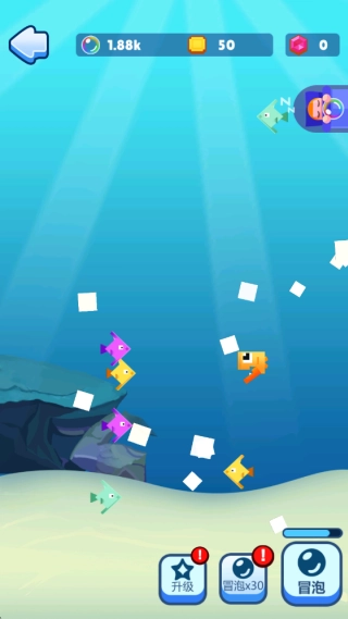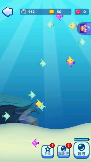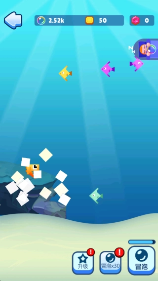 2、收集气泡解锁装饰道具,打造专属小鱼之家,同时积累分数,逐步解锁新玩法与更广阔的海域地图。