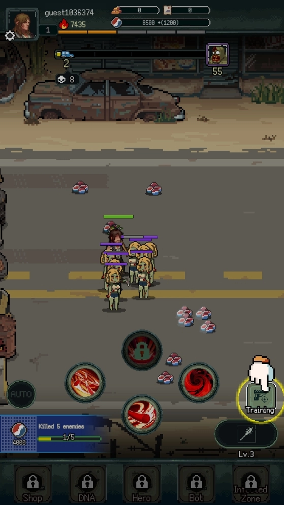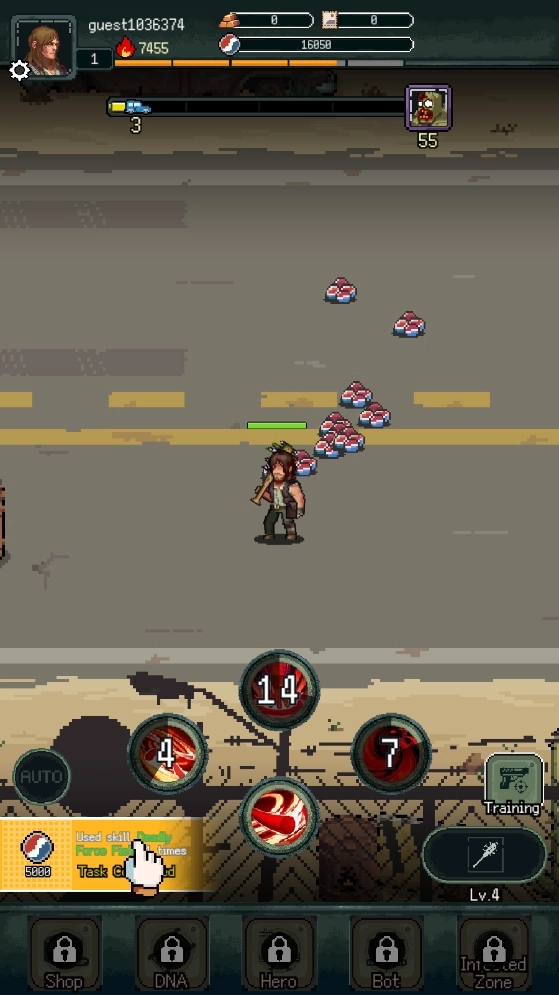 运用技能攻击丧尸,消灭它们就能获得资源。