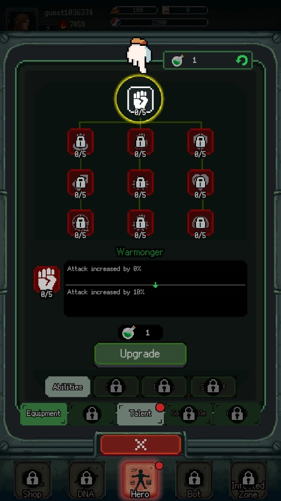 点击hero,接着点击talent天赋,然后点击那个手的图标,就能对角色的属性进行升级。