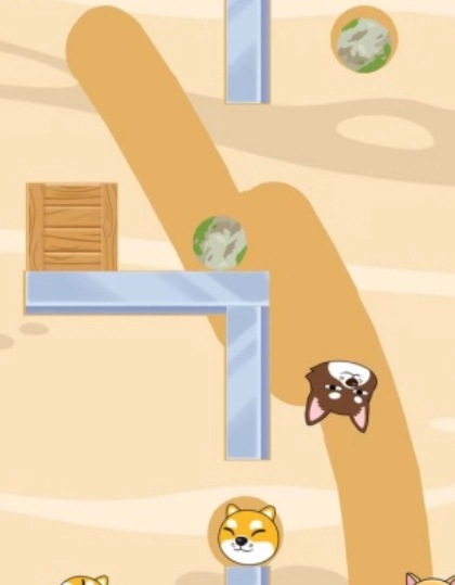 4、在确认路线安全无误后,引导小黄狗移动,收集所有金色骨头并成功抵达狗屋,通过获取星级评价来解锁下一关。