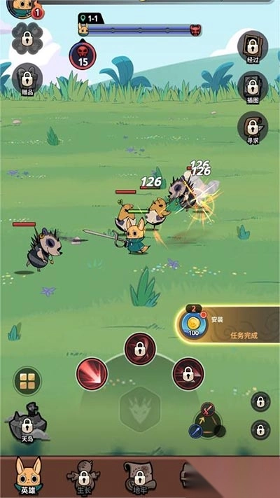 1、自动模式、战斗、副本、英雄任务等多样化的游戏内容