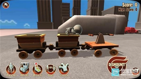 1、在《车祸英雄》里,玩家选定游戏场景后,还得对木头人角色、车辆类型、障碍物、角色姿势以及行驶路线等进行选择。