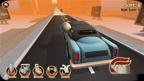 2、玩家将扮演一个驾驶自己汽车的假人开启游戏。玩家需要以最英勇的方式牺牲自己,受到的伤害越严重,得分就越高。