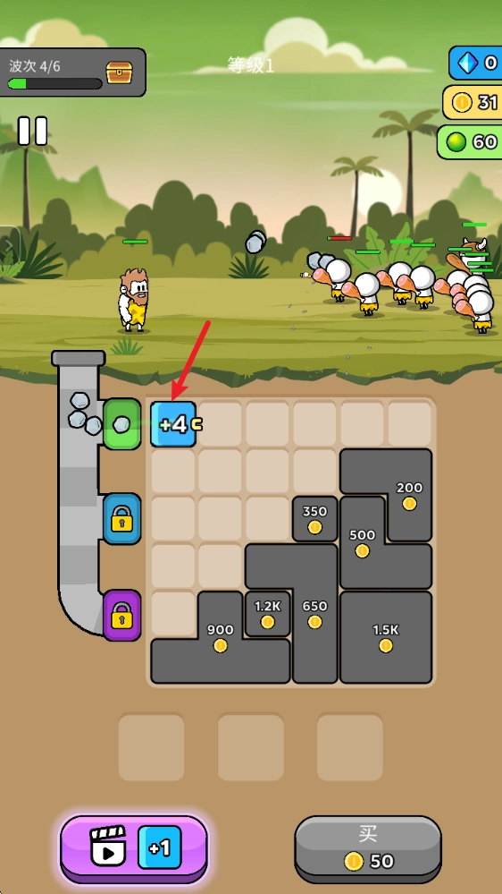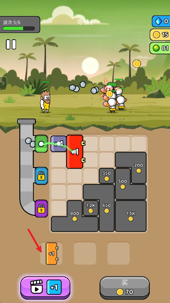 击败敌人后能够获取金币,用这些金币可以购置更多方块,进而提升武器生产的效率。