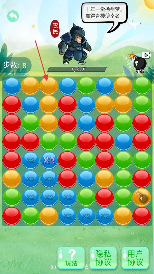 在消除关卡中,面对由彩色球体组成的矩阵,你需要按照提示点击相应颜色的球体来完成消除,同时要注意步数限制,逐步推进关卡进度。