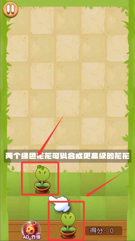 当两个等级相同的花花被移动到相邻的位置时,它们会闪烁出金色的光芒并融合升级,攻击力也会随之翻倍。