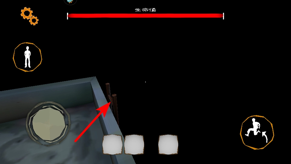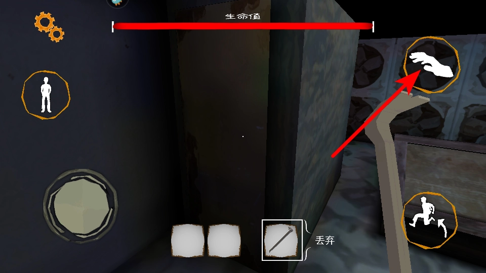 1、在场景里找到撬棍后,点击红色箭头所指的拾取按钮,将其收入道具栏,这是收集道具的关键操作。