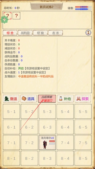 战斗结束后点击当前窗口,即可进入下一关“新兵试炼2”的准备界面。