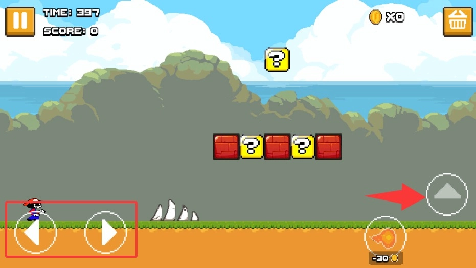 左右两侧各有一个虚拟摇杆,左边的负责移动,右边的用来控制跳跃,实际操作起来感觉挺顺畅的。