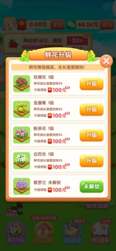 玩家红包余额最低满0.3元就能提现,直接查看预计可提现金额就行,不是说有10元红包就能提现10元到账,而是按一定比例来计算的,游戏花园等级越高,提现比例就越高。
