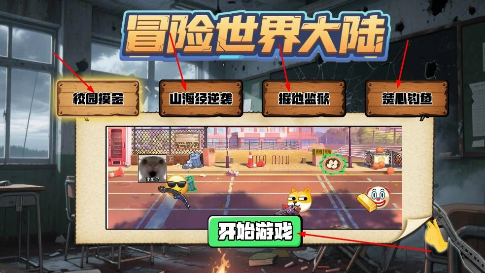 进入游戏后选择校园摸金等模式,确认选择后点击开始游戏,不同模式各自拥有独特的场景和任务。