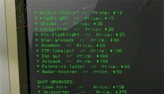 每一局游戏会持续三天,到了第四天,玩家就得把收集到的货物卖掉,用卖货的钱去购买道具。现在我们离开星球,教大家怎么卖掉物品并购买道具。当屏幕上显示“最后一天”时,大家需要在终端输入“company”,这样才能前往公司卖掉所有收集到的物品——要是没这么做,任务就算失败。抵达公司所在的星球后,大家可以把货物放到售卖窗口,全部放好后按下右边的呼叫铃铛,里面的怪物就会出来收取货物。一定要记住:怪物收货的时候别靠太近,不然会被攻击。