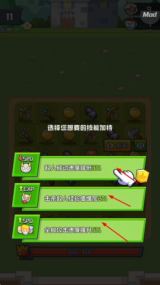合并后会触发技能选择环节,可依据实际战斗需求,挑选“敌人移速降低”“经验增加”之类的加成效果,以此实现属性强化。