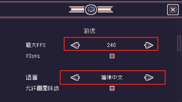 2、找到语言设置的地方,把语言改成简体中文就可以了。另外,还能将最大FPS值调整到最高,这样能让使用体验更流畅。