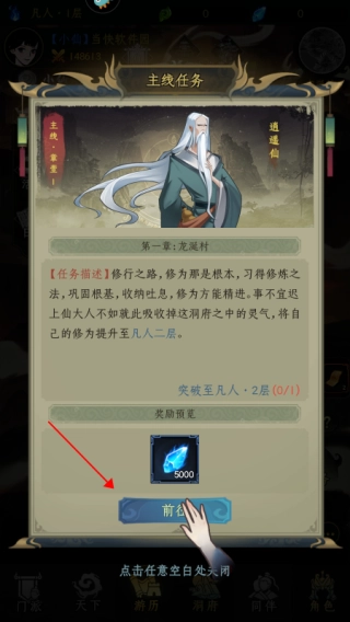 4、进入游戏后,点击主线任务,跟着主线任务推进游戏进程,能更快提升等级和成长速度;