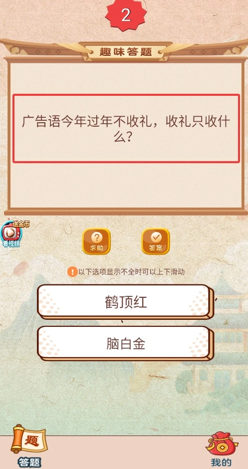 每次打开游戏,顶部都会弹出一个问题,有时是猜图题,有时是文字题,而且每次出现的题目都不重复,玩起来新鲜感满满。
