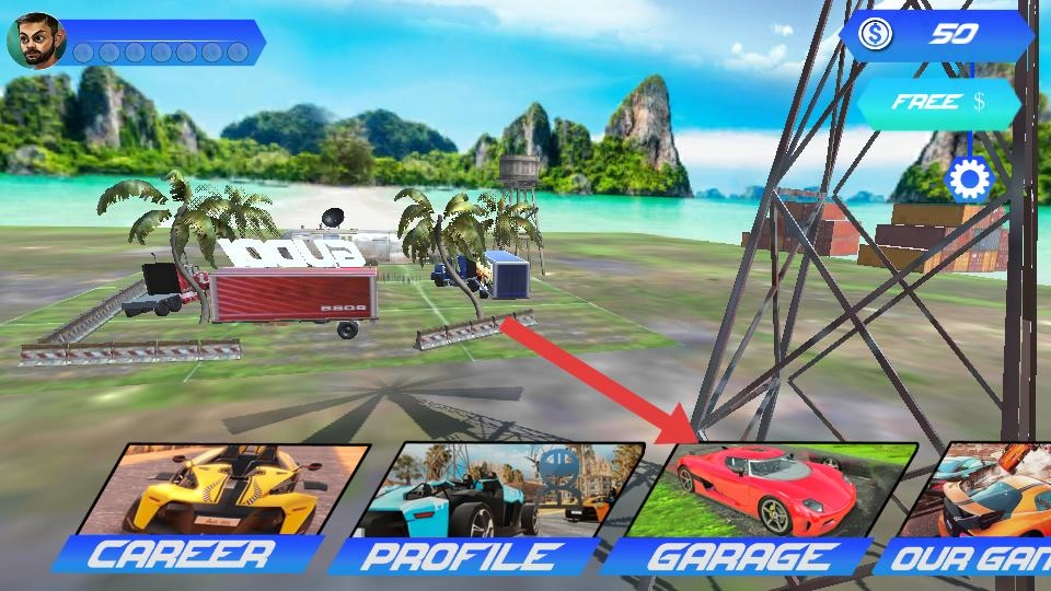 随后进入主界面,点击garage选项进入车库,在这里可以浏览各类赛车,选择心仪的赛车,为接下来的对决做准备。