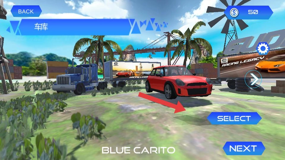 在车库中选定赛车后,点击select按钮确认所选车辆,随后即可进入下一步,开启赛车对决的匹配流程。