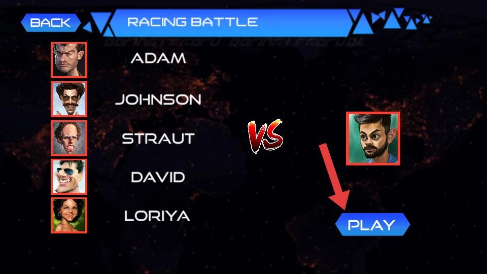 匹配到对手后,即可进入racing battle界面,点击play按钮,就能开启与对手的赛车较量,展开一场速度上的比拼。