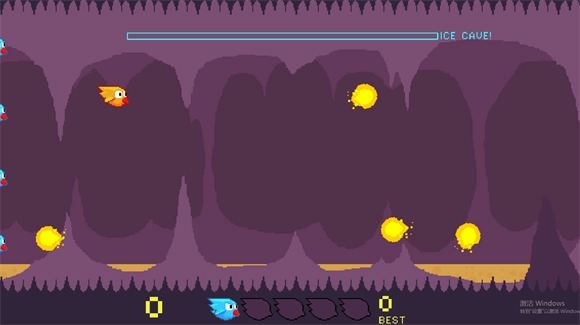 3、小鸟每向上飞一次就会喷出一团火球,不过要留意,要是自己撞到火球也会让游戏结束。