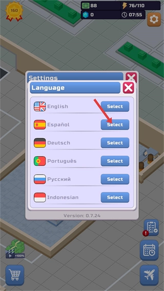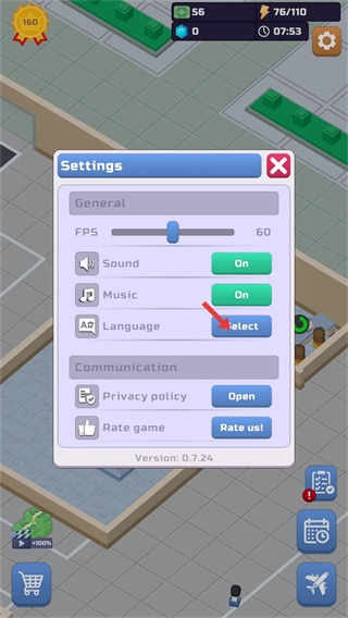 若要打开设置界面,只需点击Language对应的Select按钮,即可进入语言选择列表,进而切换游戏的显示语言。