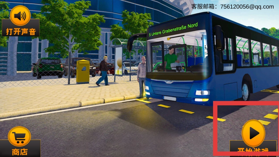 玩家在游戏后点击进入游戏,于游戏主界面点击开始游戏按钮,进入游戏流程,准备体验巴士驾驶。