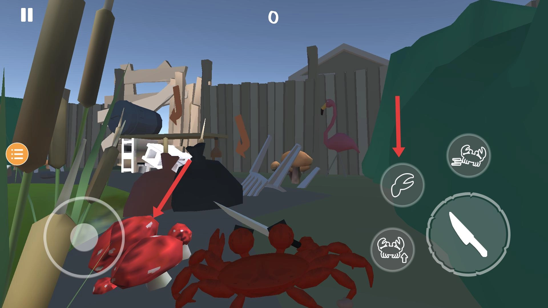 点击开始按钮,进入游戏世界,操控螃蟹在场景里移动,借助刀具等道具,开启一场冒险挑战。