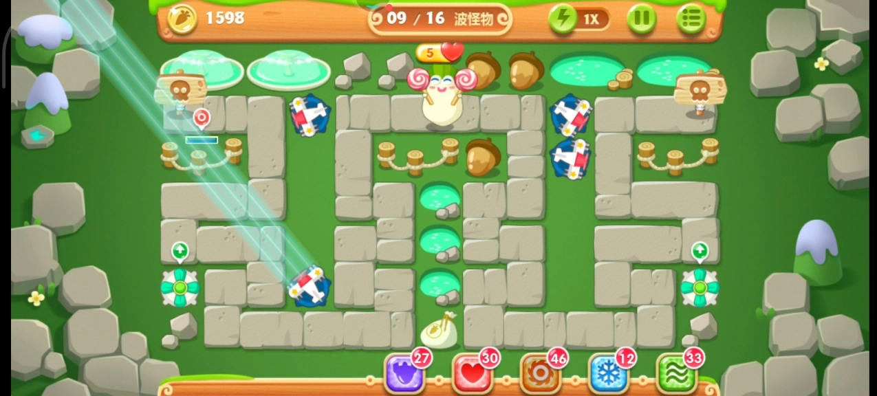 合理运用炮塔:挑选适配当前关卡的炮塔搭配是核心要点。比如,借助太阳花实现群体伤害,利用瓶子炮提升攻击速度,通过魔法球完成单体高额伤害输出,依靠月亮达成群体减速效果等。