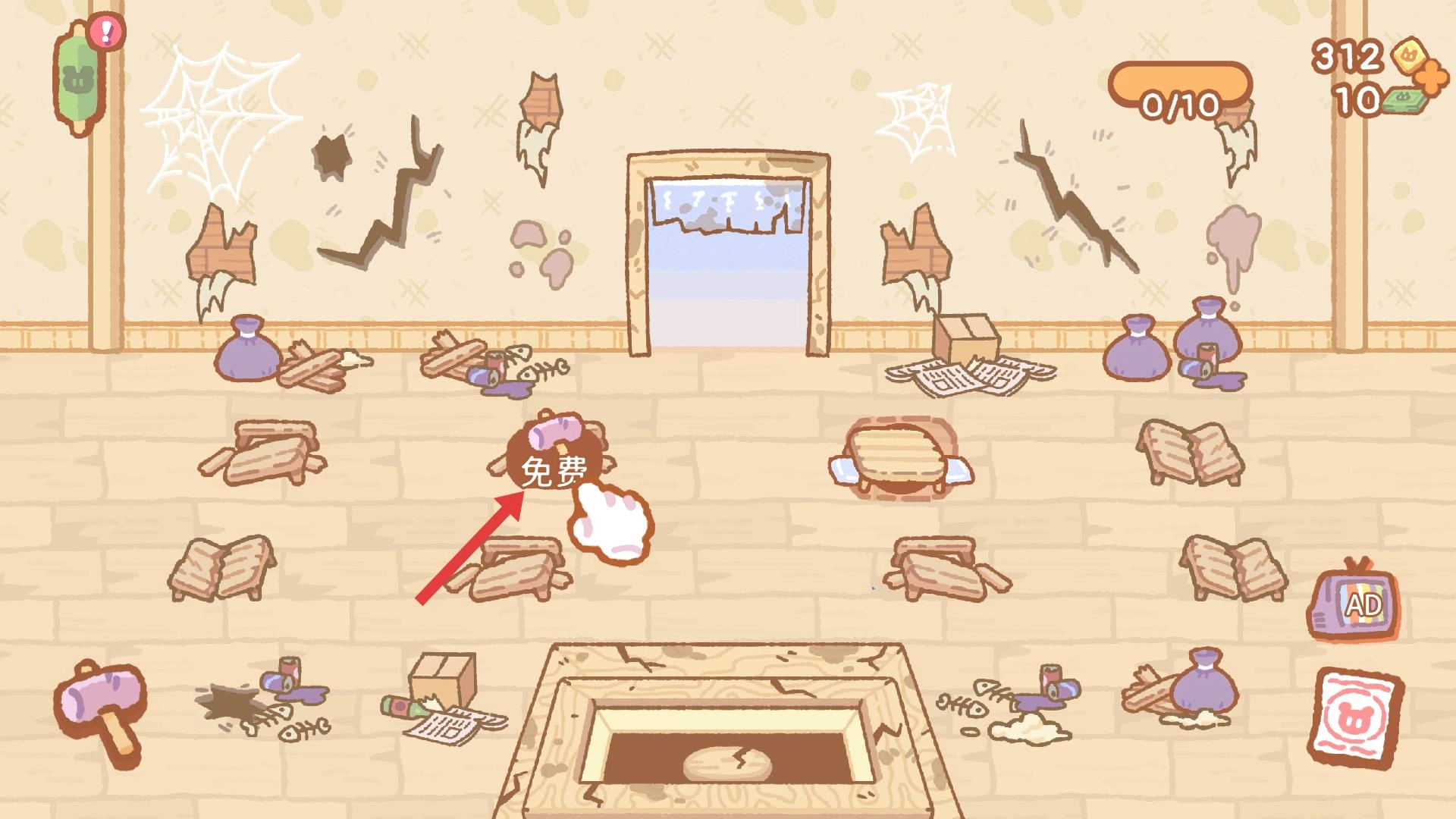 在房间里找到标有“免费”字样的锤子并点击,参与互动就能获得道具或资源,这些可以帮助你改造餐厅,也能为后续的经营提供助力。